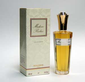 Эти были мои первые французские духи! Как много говорят о том какие запахи подходят девушкам, какие – женщинам…Все это полная ерунда – они подходят нашей индивидуальности – в каком бы мы возрасте не пребывали! И таким образом фирма «Роша» лет на 10 прочно обосновалась в моей косметичке. Марсель Роша умер в 1955 году. Его жене было 28. Она не вышла замуж, а продолжила дело мужа став самой молодой управляющей огромной косметической фирмы. В 1960 году Элен выпускает «Madame Rochas». Флакон их, изготовленный Баккара – повторяет оригинал XVIII века, найденный Элен у парижских антикваров. Духи «Madame Rochas» приобретают международный успех, а сама мадам Роша получает титул Perfume Queen. В 1982 году их композиция была несколько обновлена парфюмерами Jean-Louis Sieuzac и Jacques Fraysse.